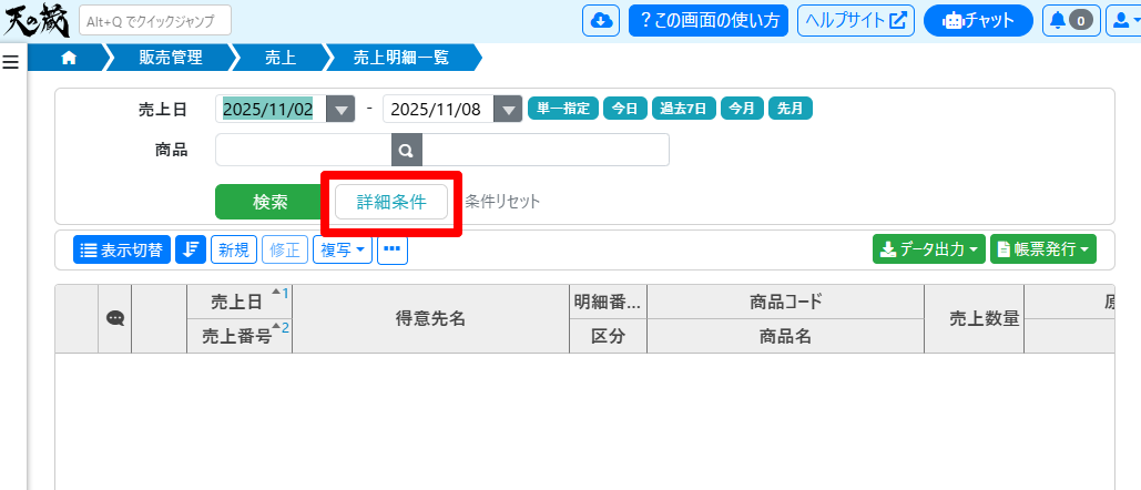 検索画面で[詳細条件]をクリックします。