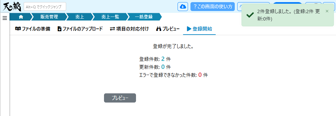 - [プレビュー]をクリックし、登録前に内容を確認します。