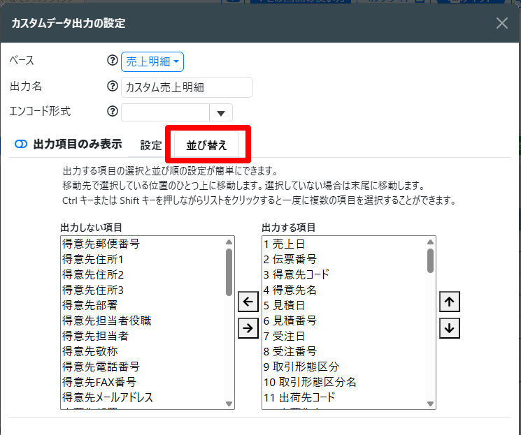 | №(図の②) | 出力順序を指定します。ドラッグで並べ替えが可能です。 複数選択してまとめて上下移動させることができます。 |