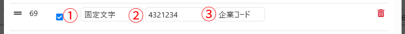 | ①固定文字 | 常に指定された文字内容で出力します。 |